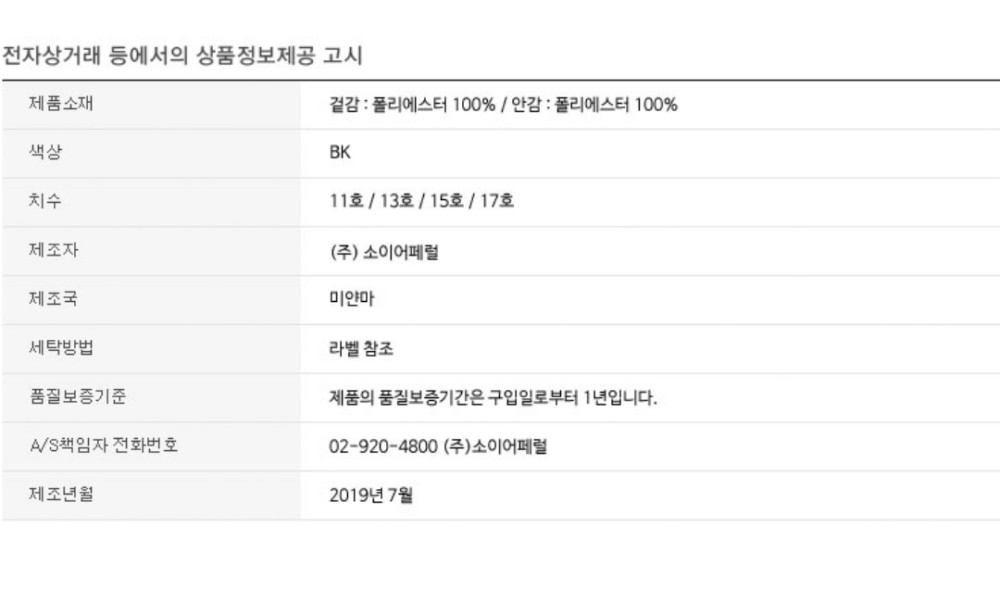 | 세탁방법 및 취급시 주의사항 | 상품페이지 참고 |