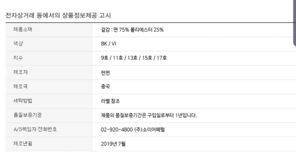 | 제품소재 | 상품페이지 참고 |