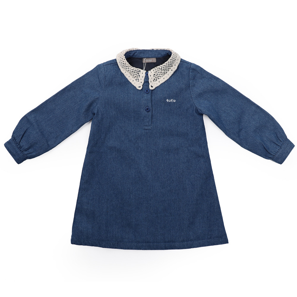 데님과 레이스카라 조합이 고급스러운원피스입니다. 차분하면서고 편안한 느낌을 주는 원피스입니다