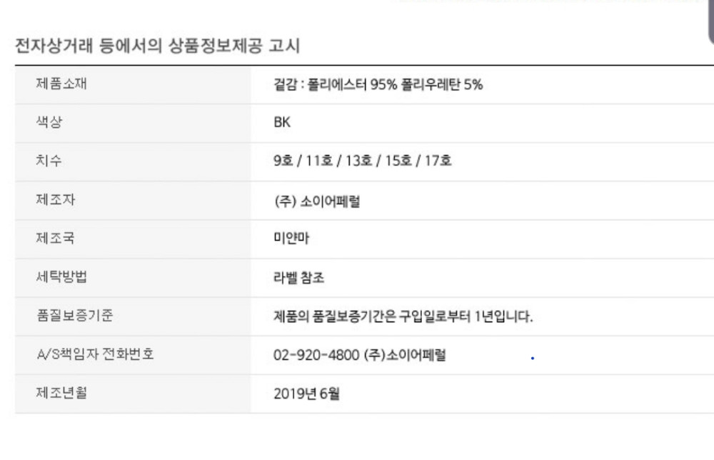 | A/S 책임자와 전화번호 | 상품페이지 참고 |