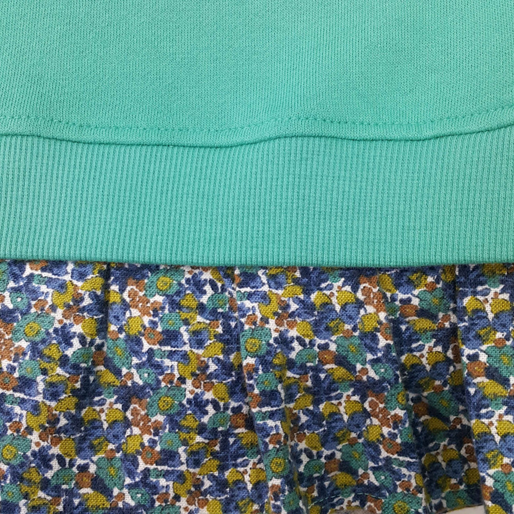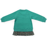 민트컬러 맨투맨과 그린 플라워 배색이 귀여운 롱티셔츠입니다 레깅스나 스키니팬츠와 매치하여 입기좋은 아이템입니다