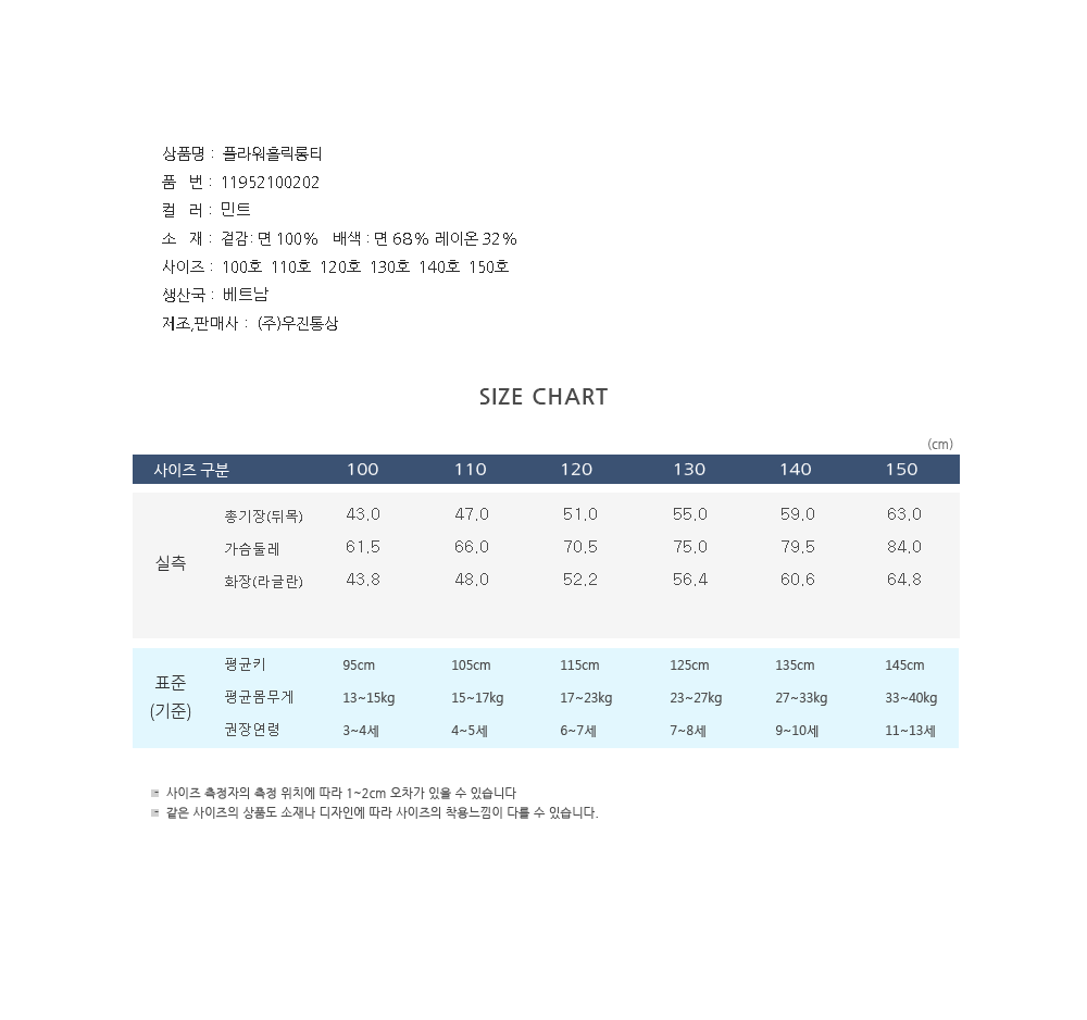 | 세탁방법 및 취급시 주의사항 | 상품페이지 참고 |