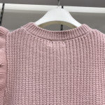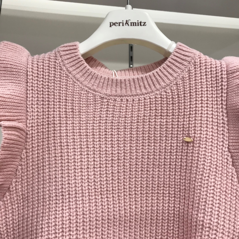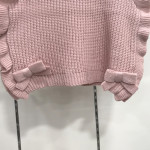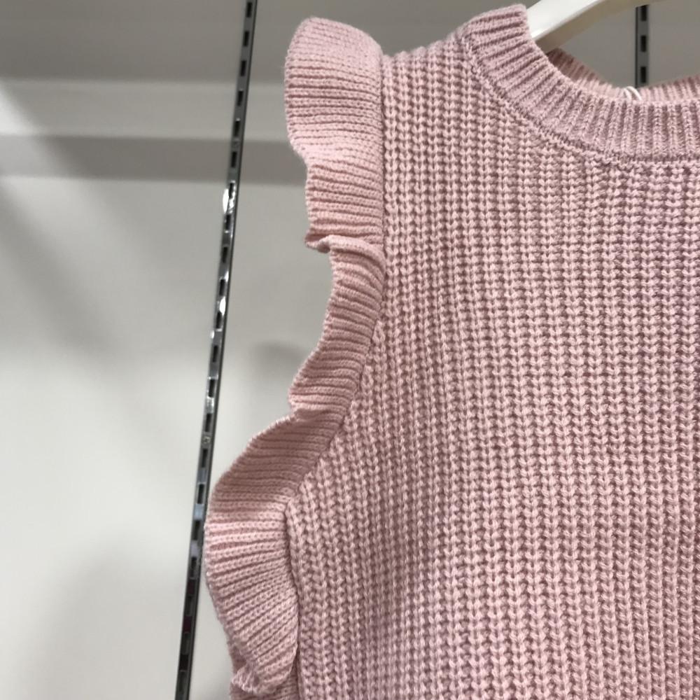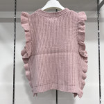 프릴과 리본이 포인트로 들어간 사랑스러운 핑크 컬러의 샤인 니트 조끼입니다.