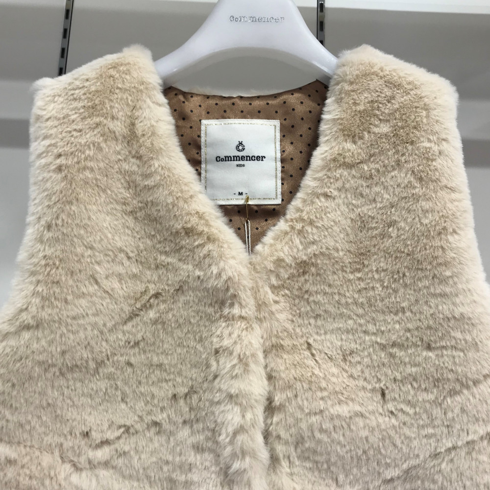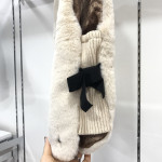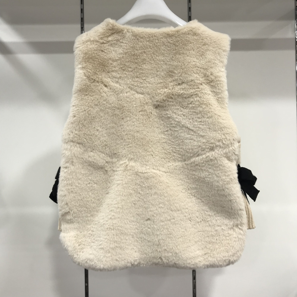 파르벤 니트 배색 퍼 조끼 아이보리 컬러입니다. 옆부분 니트 배색과 리본 디테일이 들어가 있습니다.
