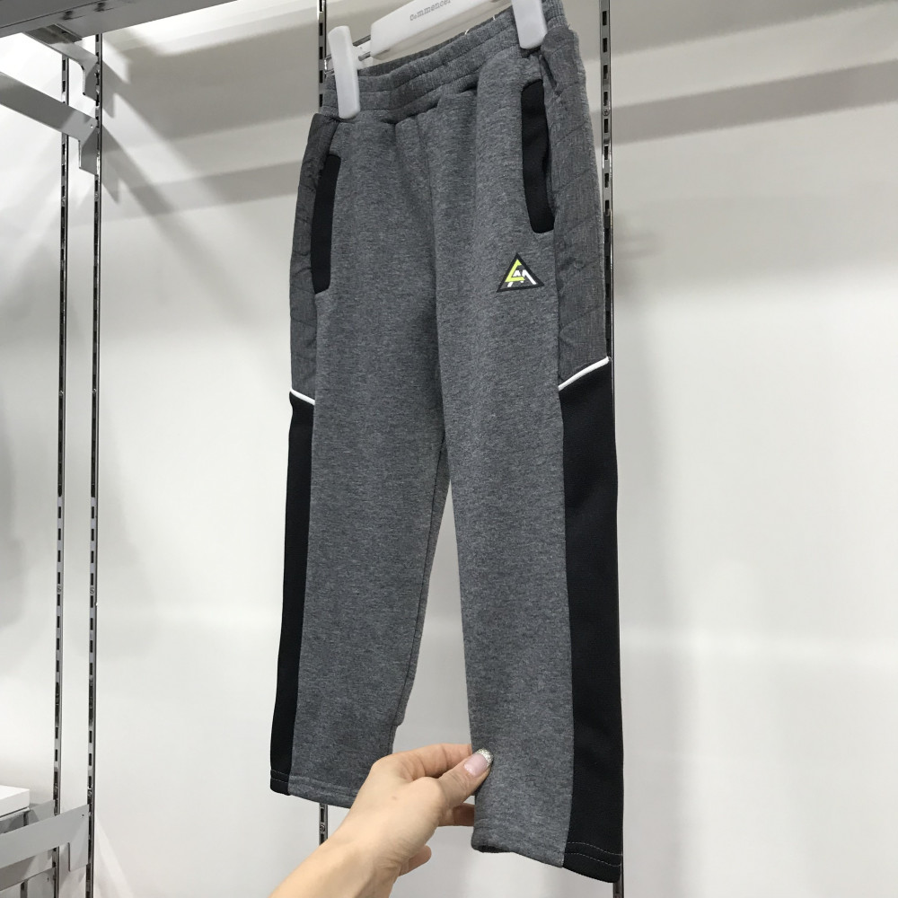 옆선에 컬러 배색이 들어가 있는 베이직한 디자인의 트레이닝 팬츠입니다. 안감은 기모로 되어 있습니다.