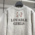 여아용 오트밀 컬러의 반목 롱 티셔츠입니다. 앞쪽 아랫 부분에 트임이 있습니다.