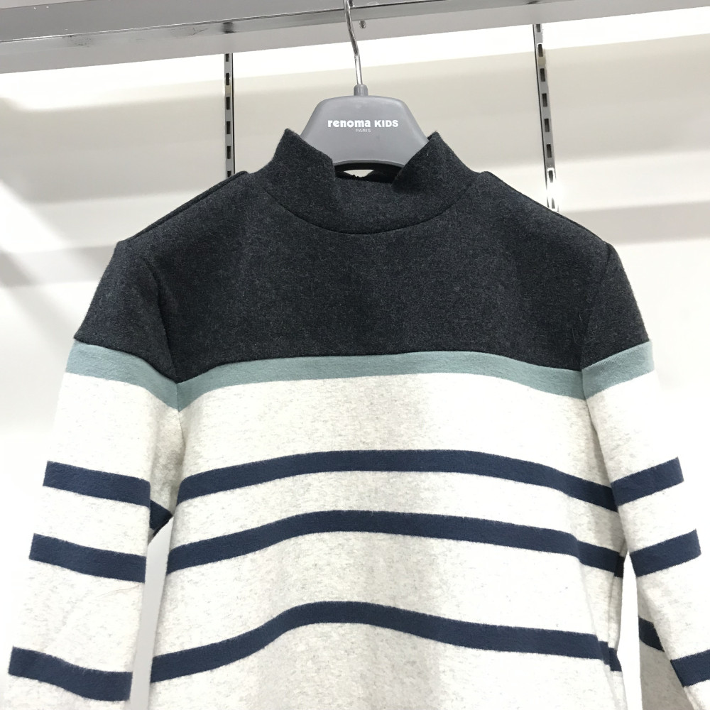 컬러 배색이 들어가 있는 스트라이프 반목 티셔츠 입니다.