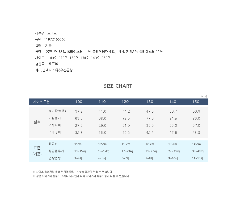 로버트티 아동 따뜻한 기모맨투맨 11972-100-062 요약정보 및 구매