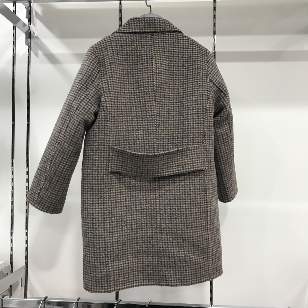 남녀 공용으로 입힐 수 있는 잔체크 핸드메이드 코트 브라운 컬러입니다.