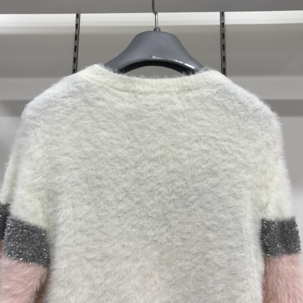 여아용 메탈 날개사 니트 아이보리 컬러입니다.