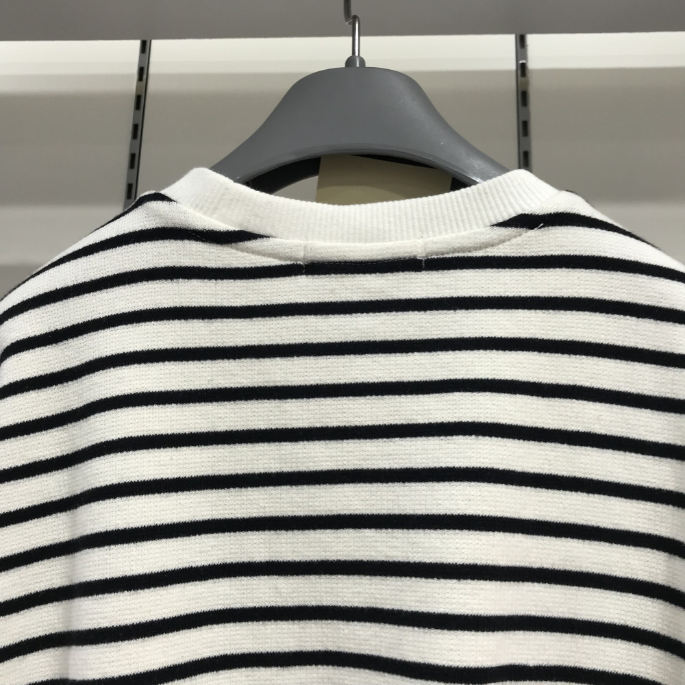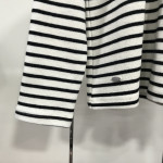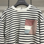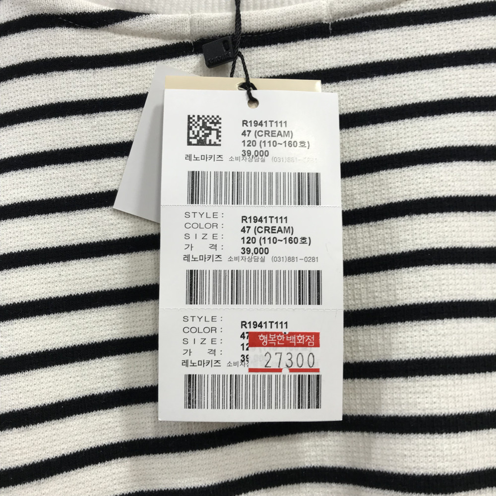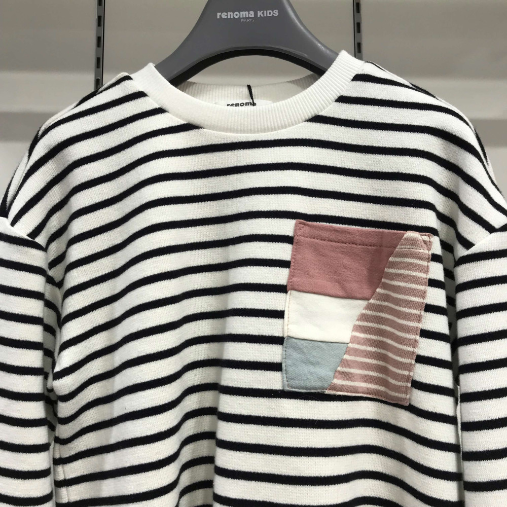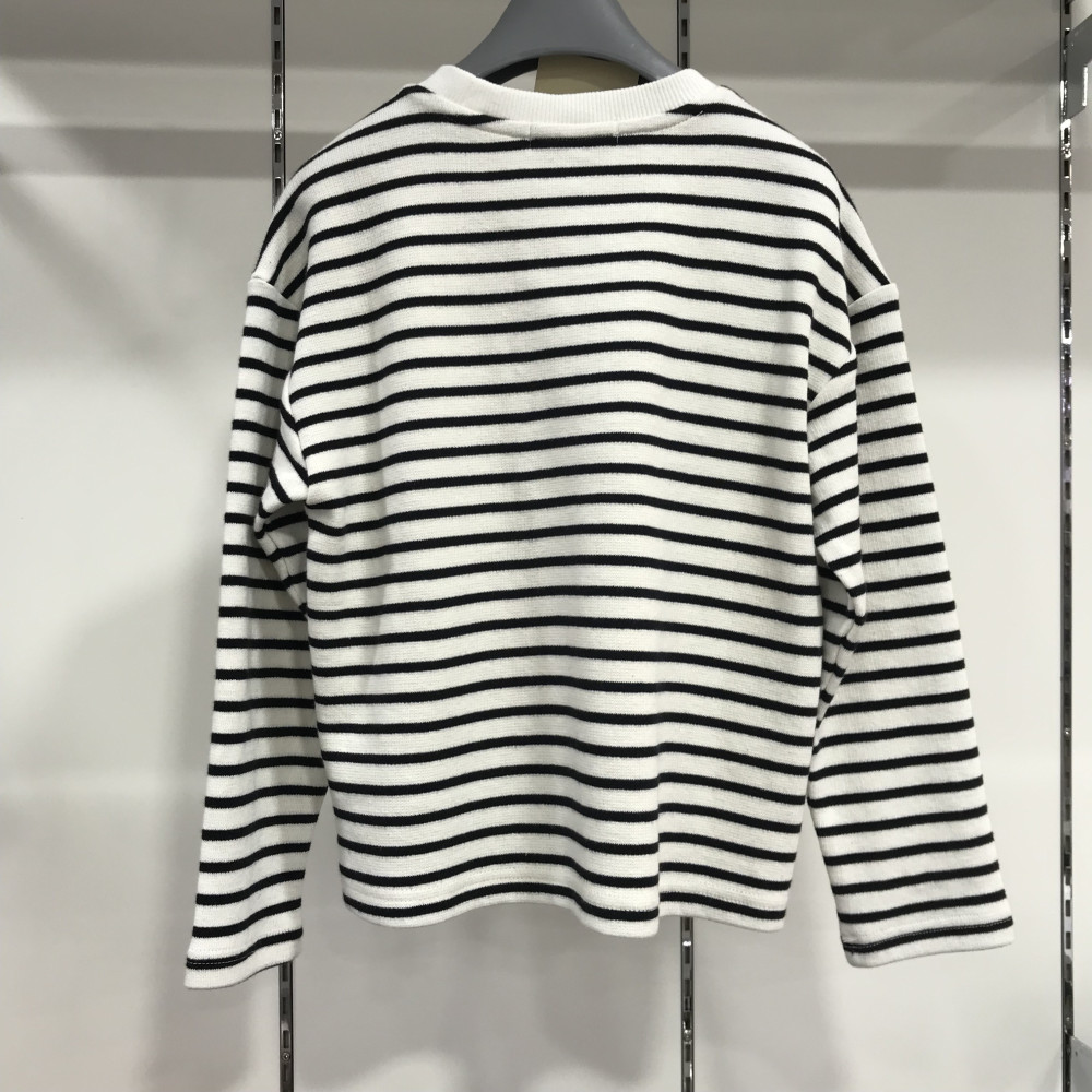여아 수술 포켓 장식 스트라이프 티셔츠 크림 컬러입니다.