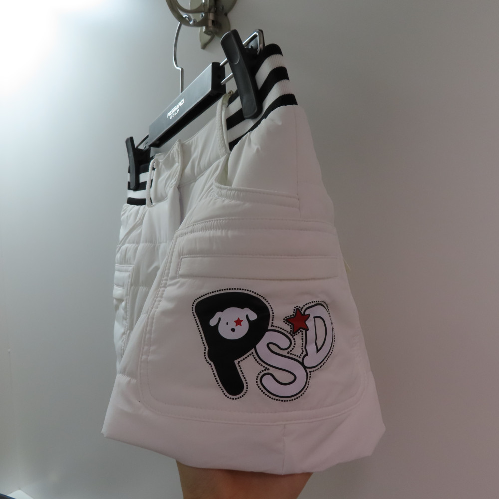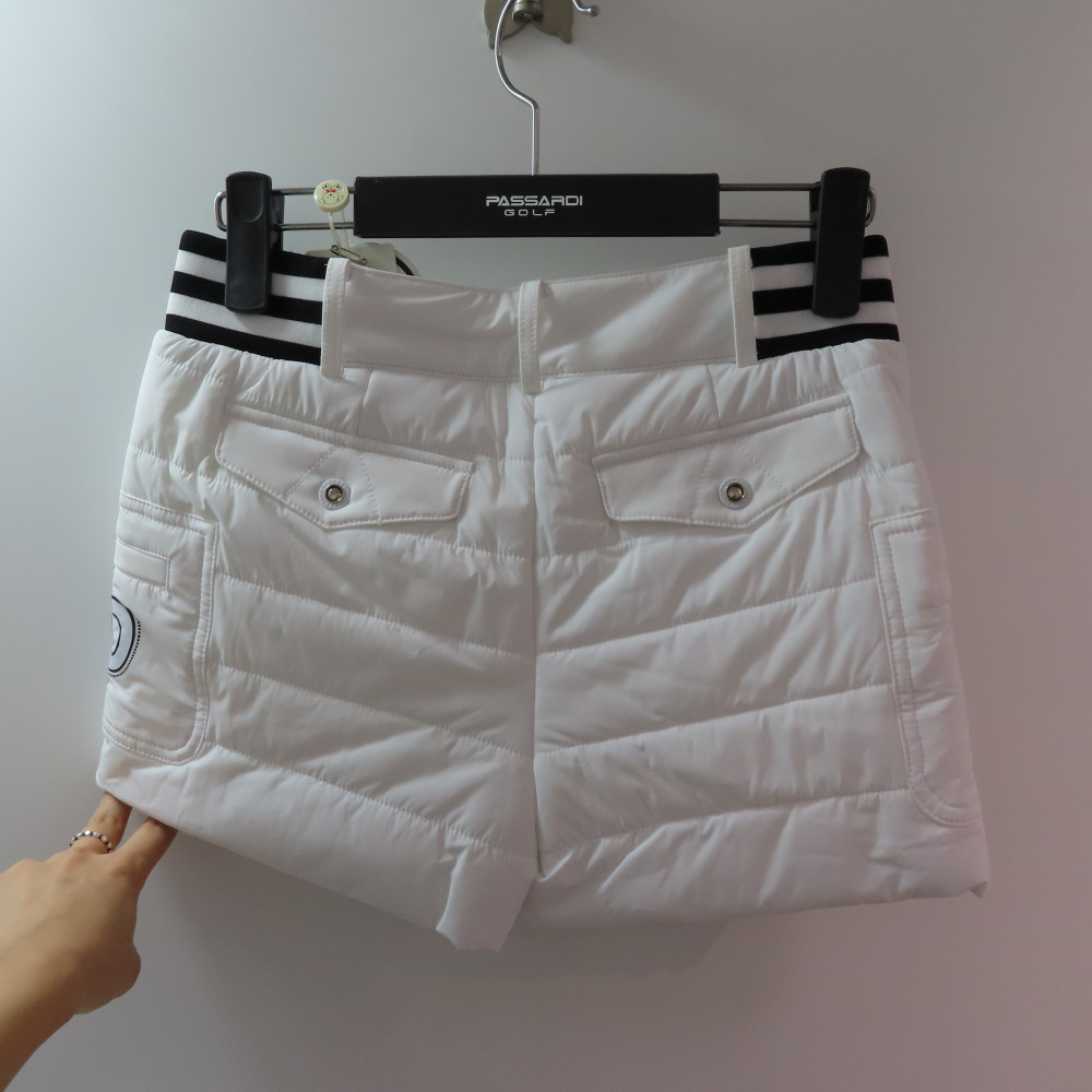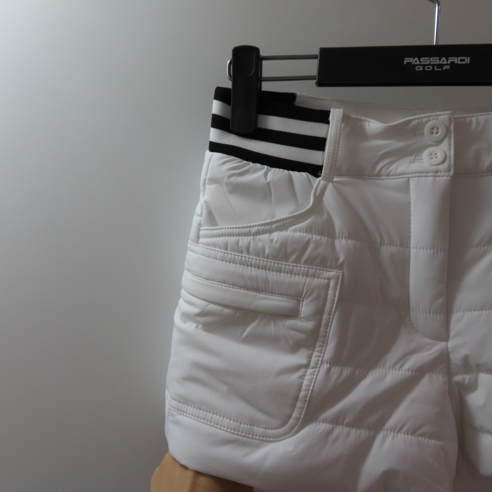 허리 밴드 배색 패딩 반바지 화이트 컬러입니다.