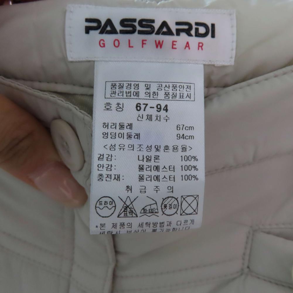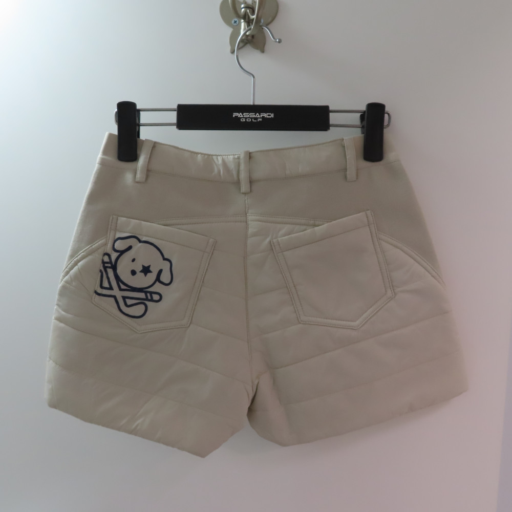 여성 골프 패딩 반바지 베이지 컬러입니다.