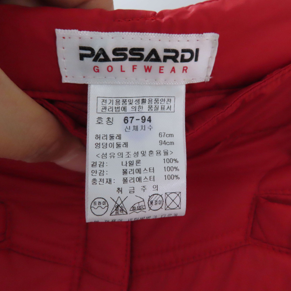 여성 골프 패딩 반바지 레드 컬러입니다.