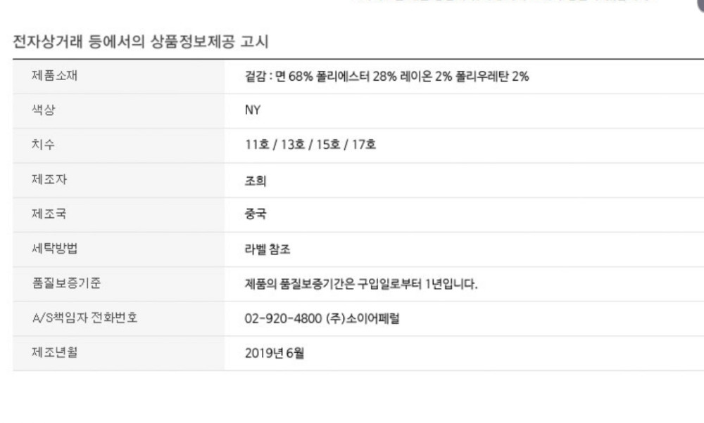 상품 정보 고시