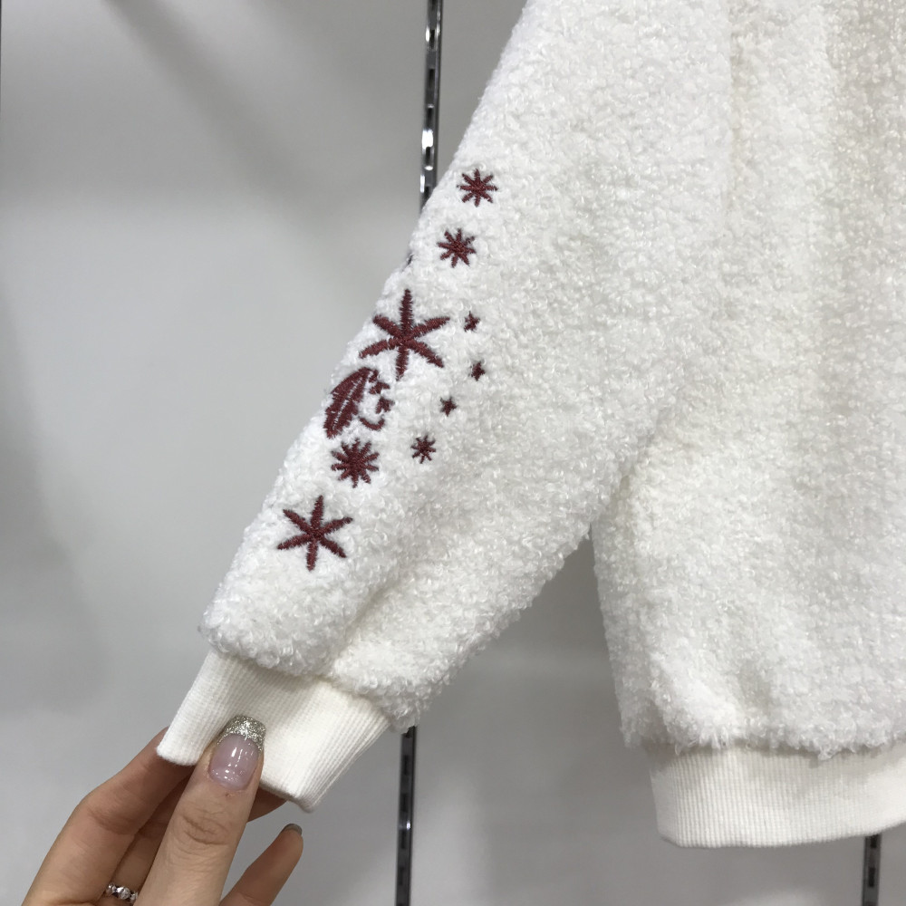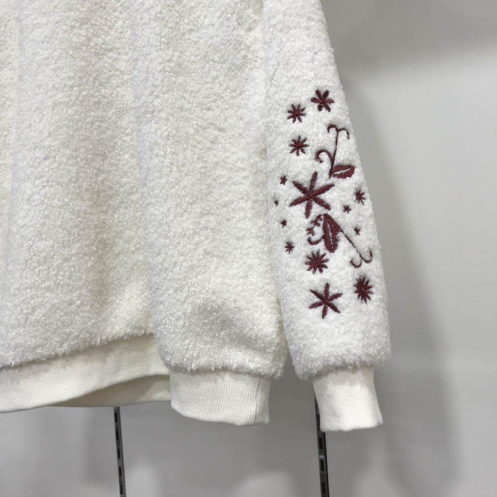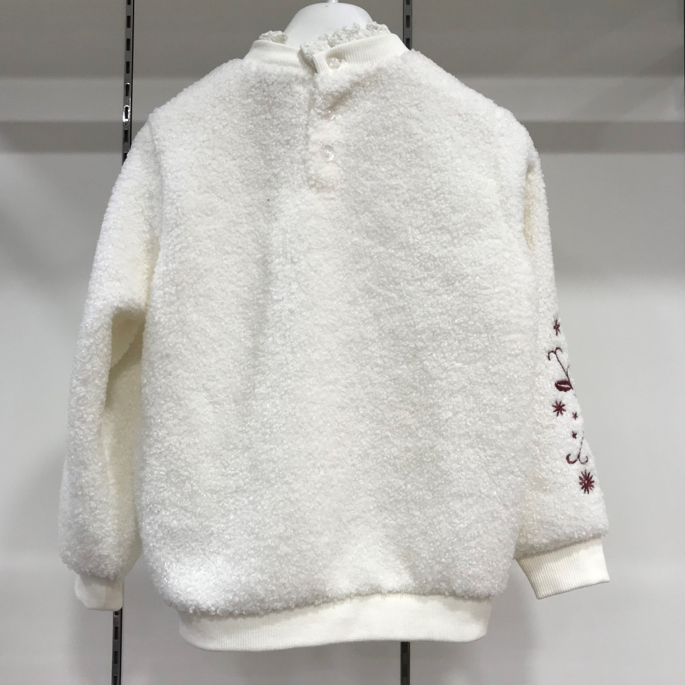 빈티지 퍼 자수 맨투맨 티셔츠 아이보리 컬러입니다.