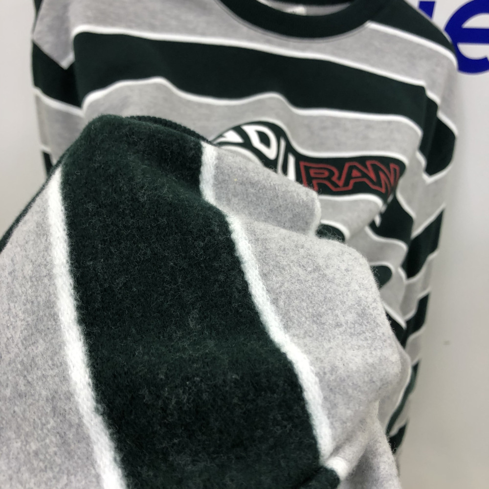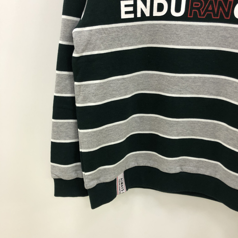 유니 그린 스트라이프 맨투맨입니다. 기모 안감으로 겨울 따뜻하게 착용할 수 있습니다.