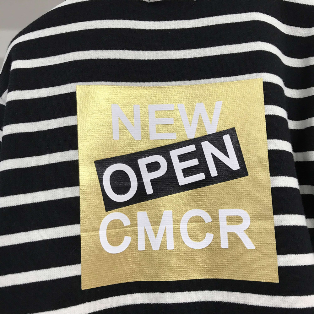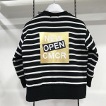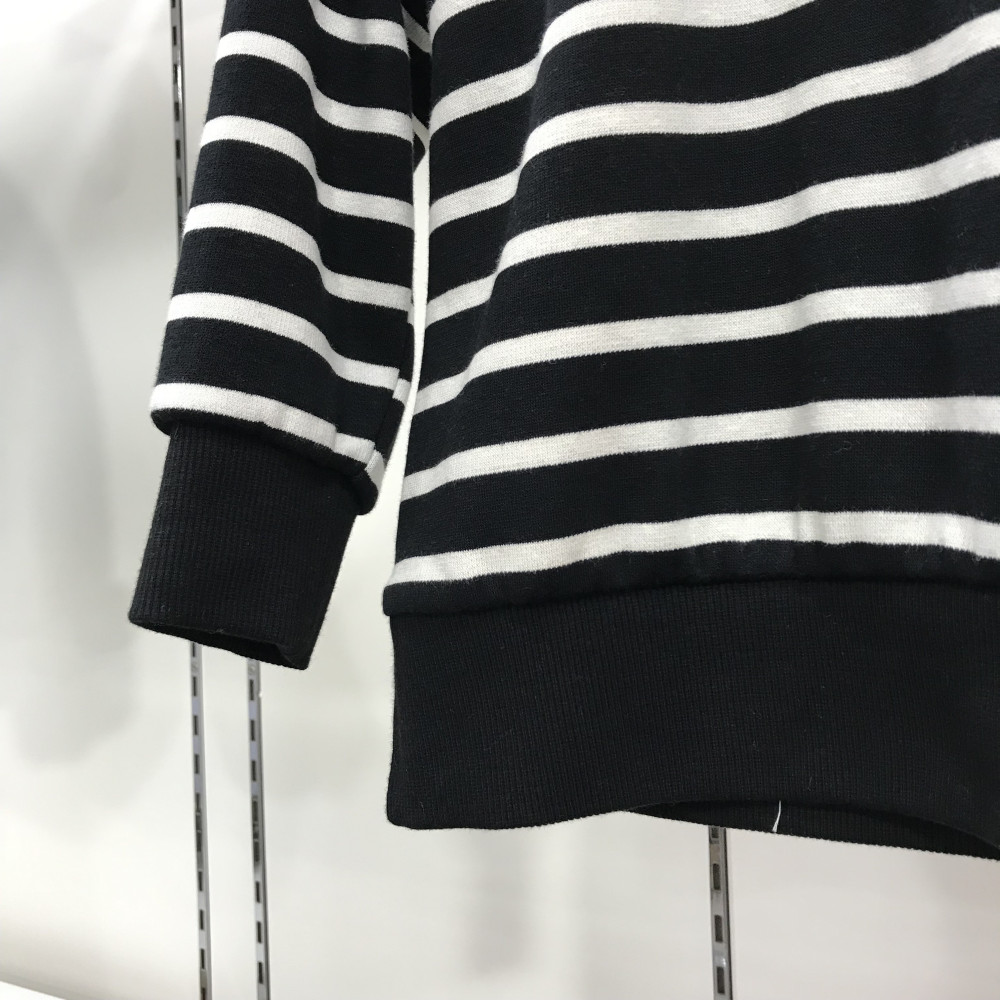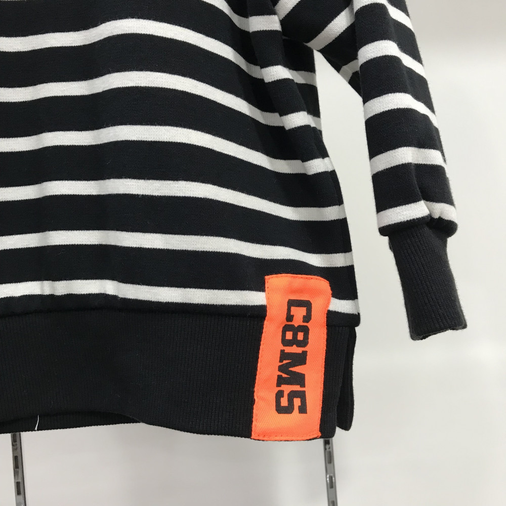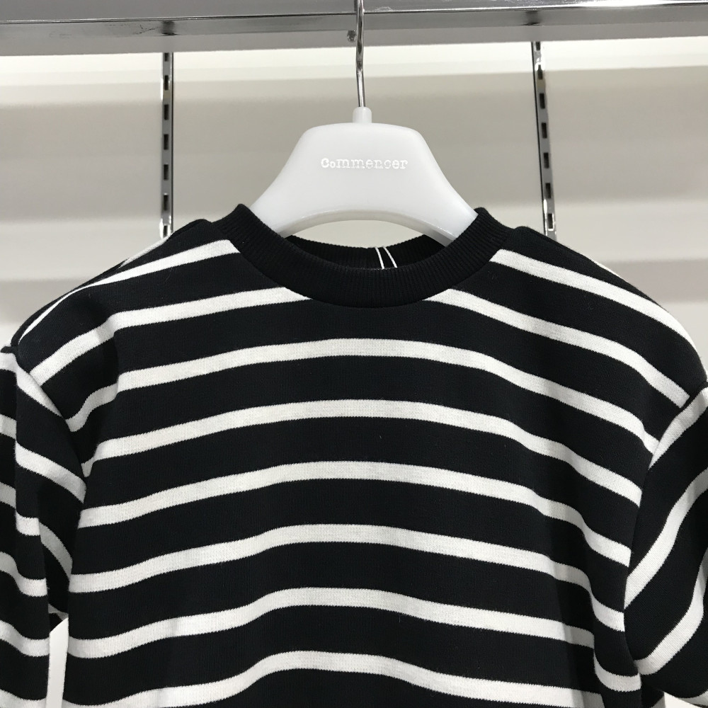 블랙 스트라이프 맨투맨 티셔츠입니다. 뒷부분에 프린팅이 들어가 있습니다.