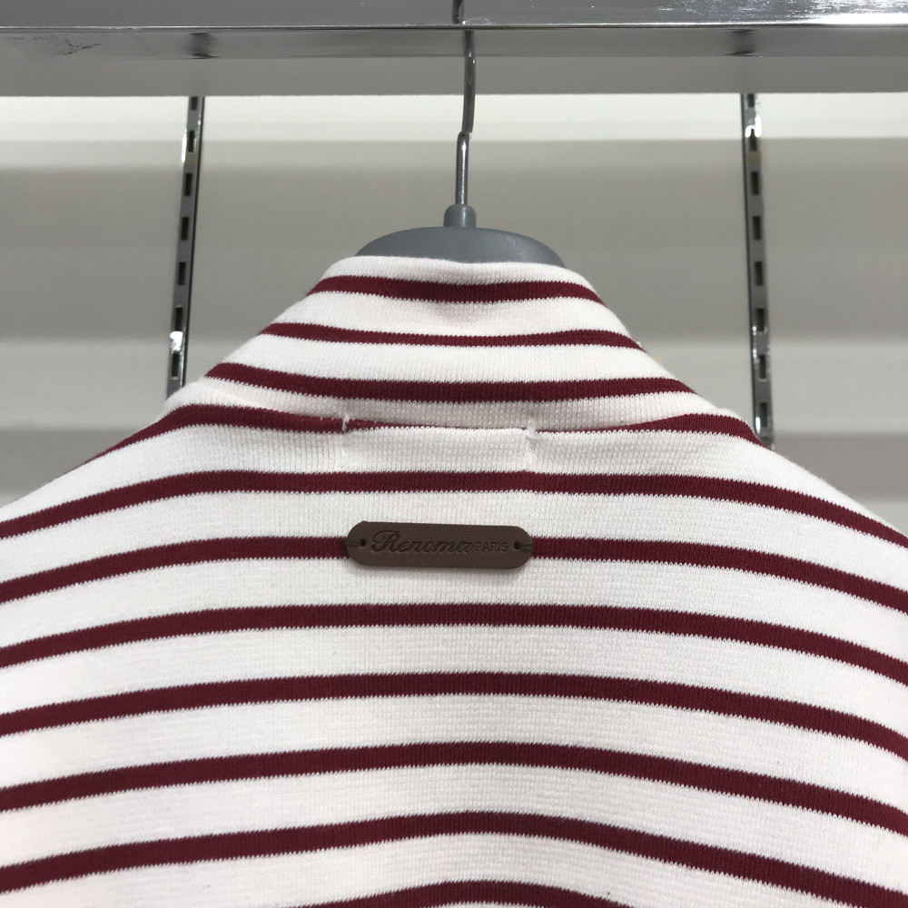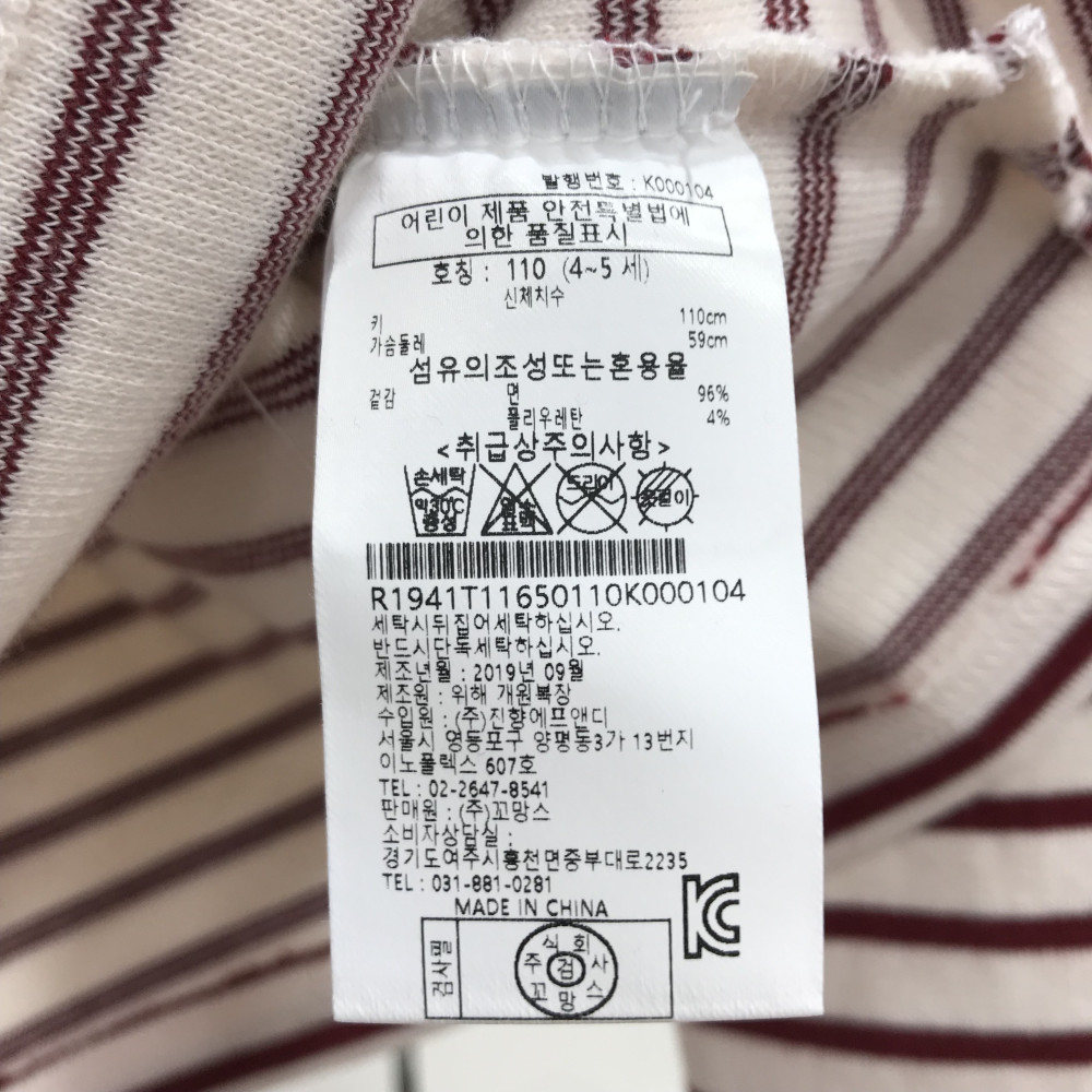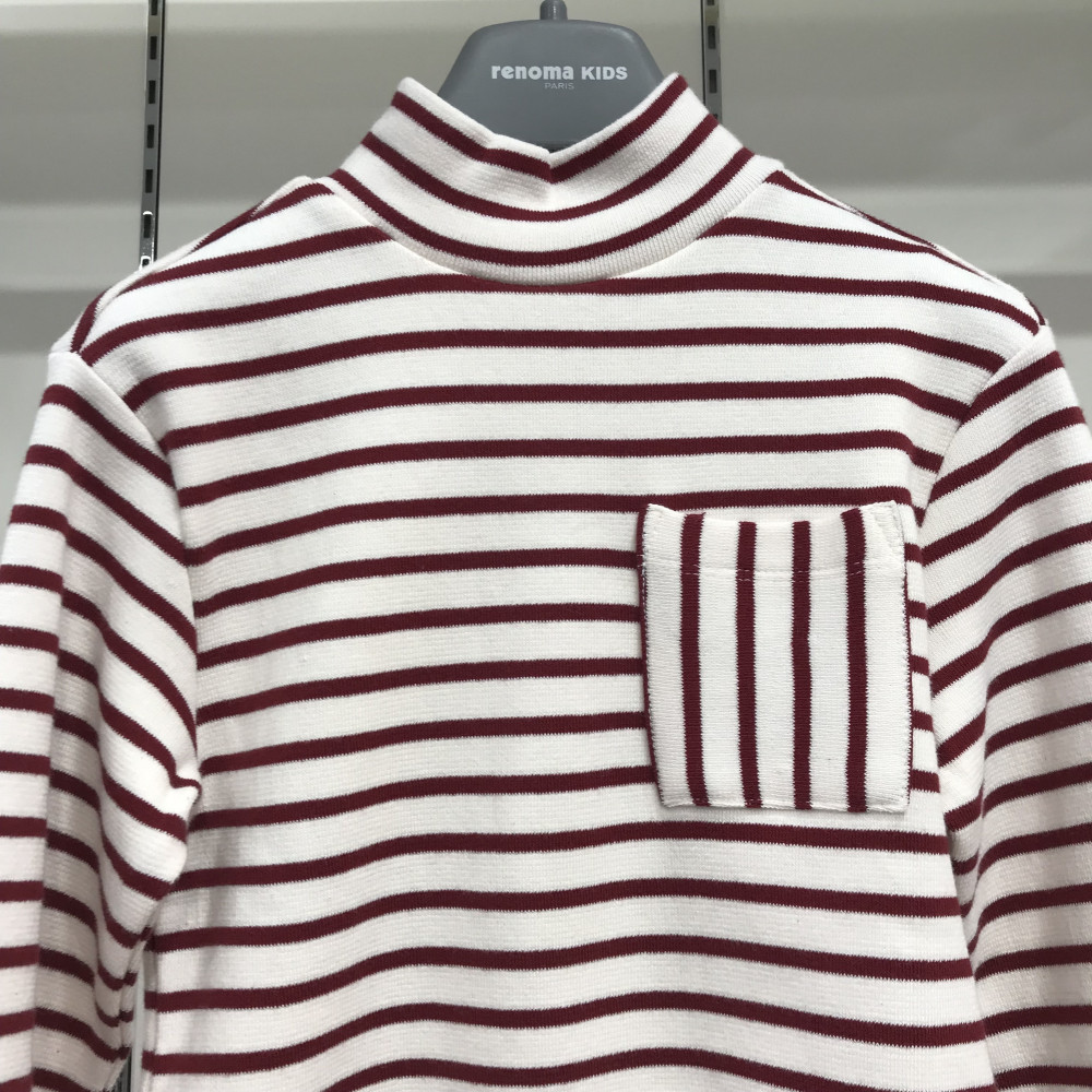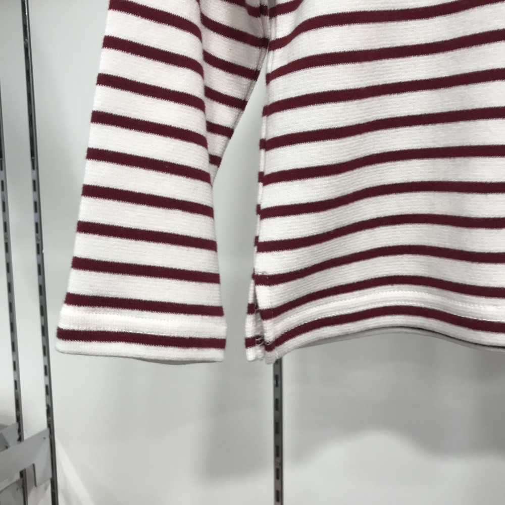 여아용 반목 스트라이프 긴팔 티셔츠 버건디 컬러입니다.