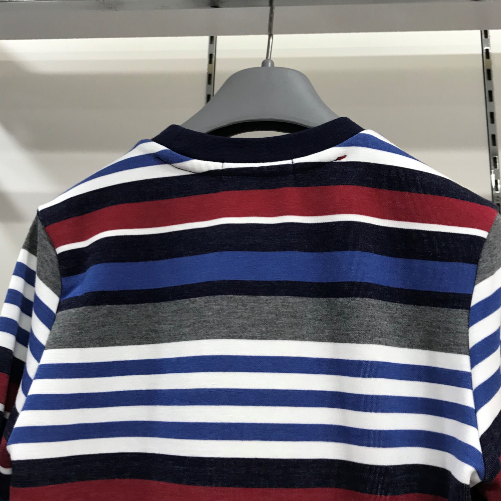 남아용 레드 멀티 스트라이프 긴팔 티셔츠입니다.