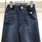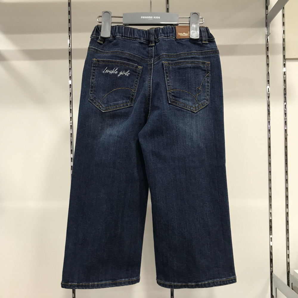 여아용 일자 통 핏 9부 데님 인디고 블루 컬러입니다.