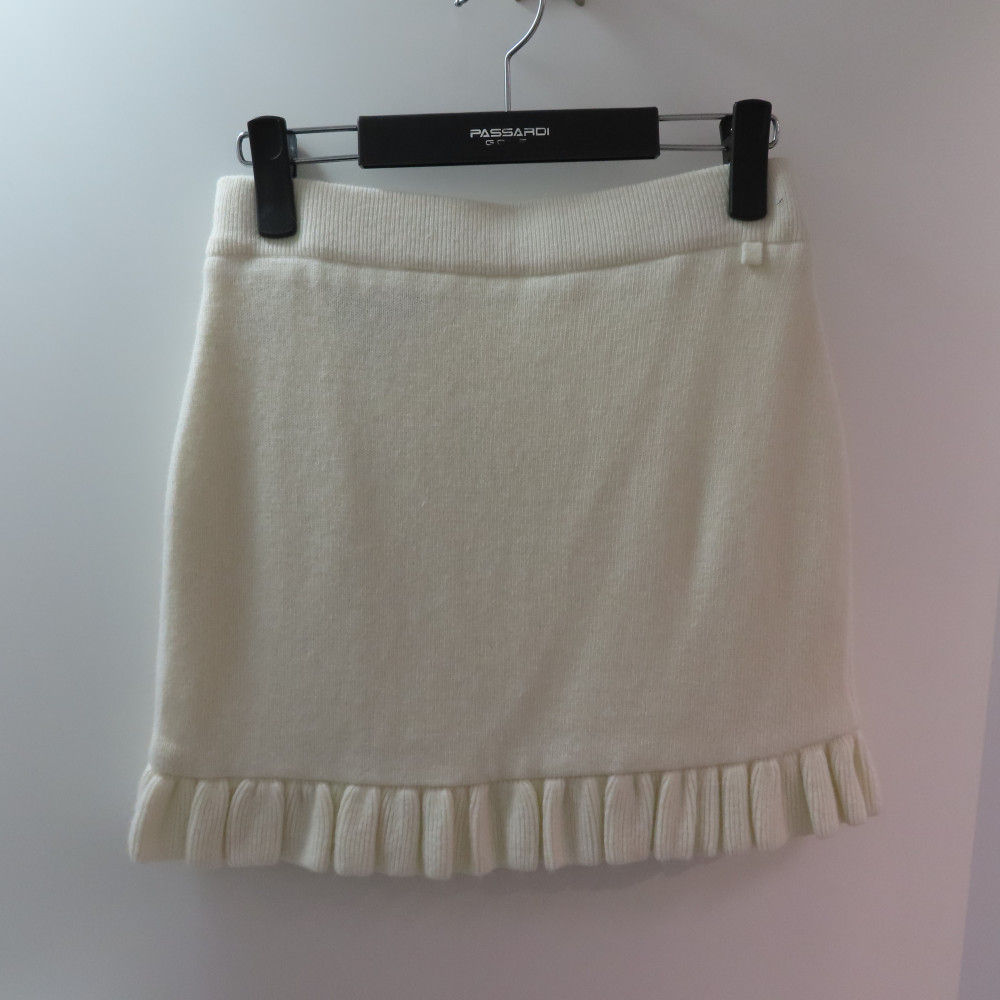 밑단에 프릴 포인트가 들어간 여성 골프 니트 방풍 스커트 아이보리 컬러 입니다.