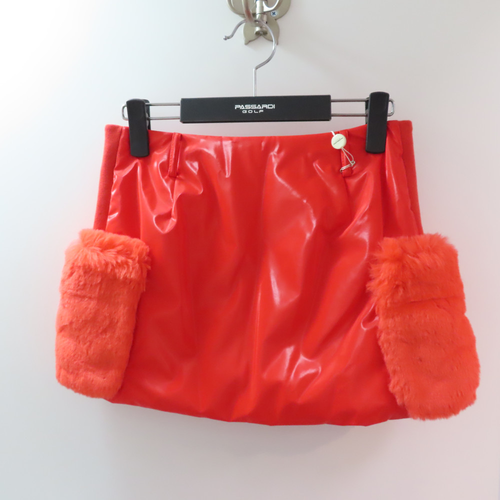 퍼 포켓 포인트 패딩 스커트 오렌지 컬러입니다.