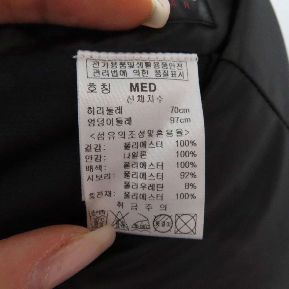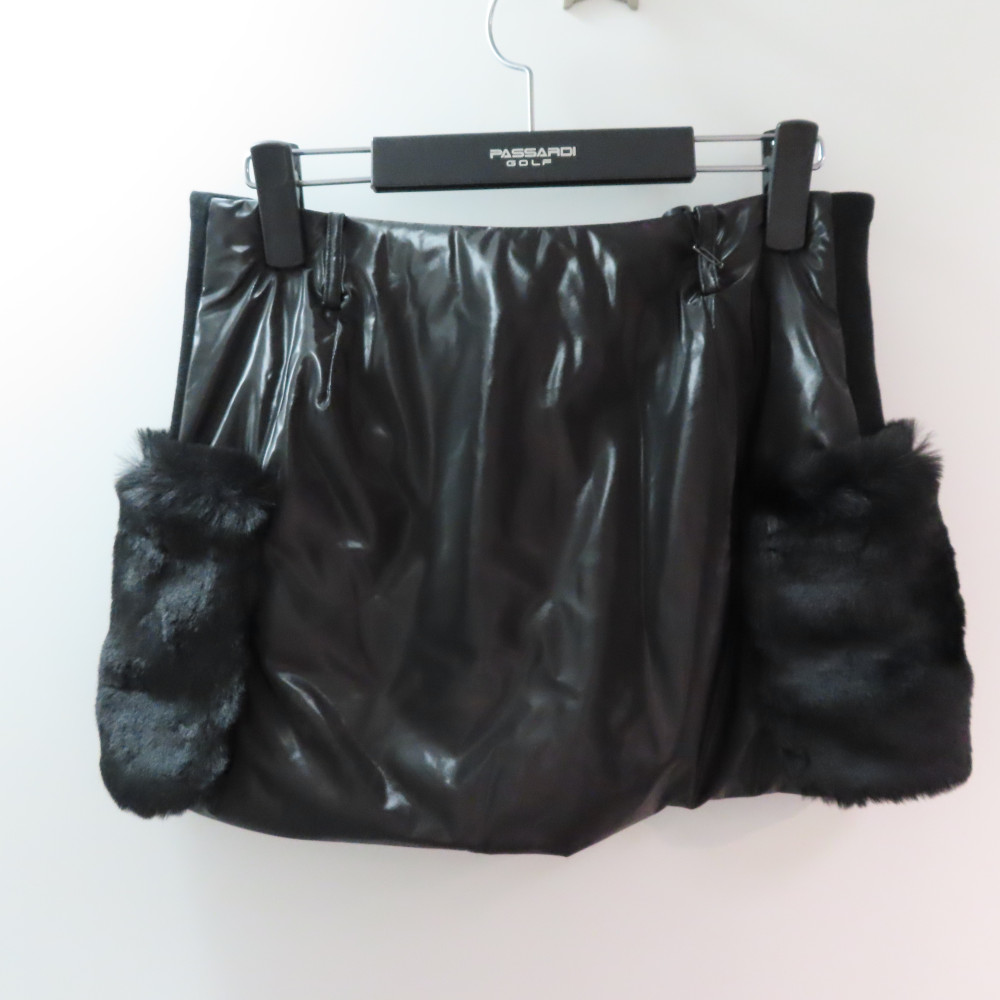 퍼 포켓 포인트 패딩 스커트 블랙 컬러입니다.