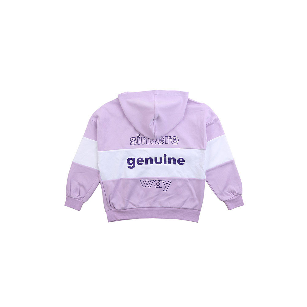 유행 컬러인 라벤더 컬러의 후드티로 앞부분에 나염이 포인트인 아이템. 청바지나 레깅스에도 잘 어울리는 아이템