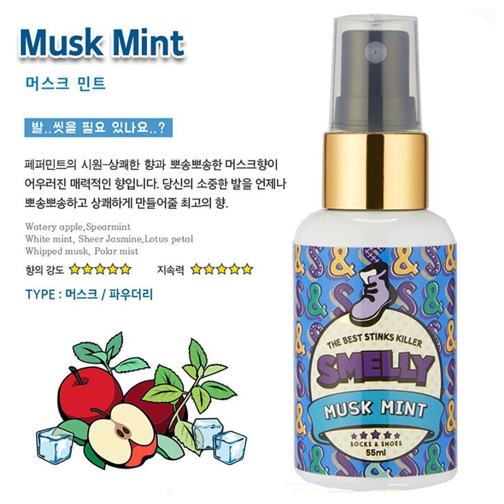 스멜리 삭스앤슈즈 신발탈취제 머스크민트 55ml >