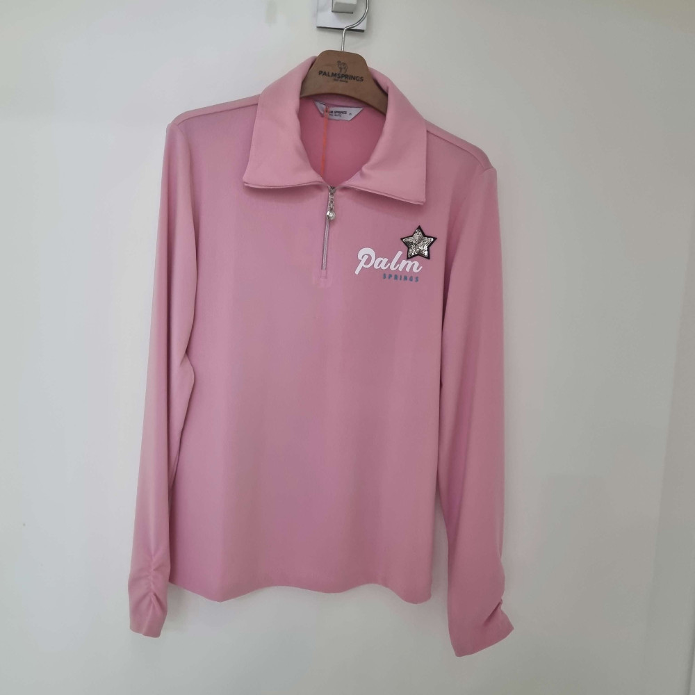 [행복한백화점][팜스프링스] 봄 여성 와이드. 하이넥. 반짚업 티셔츠 STSL 241201ST >