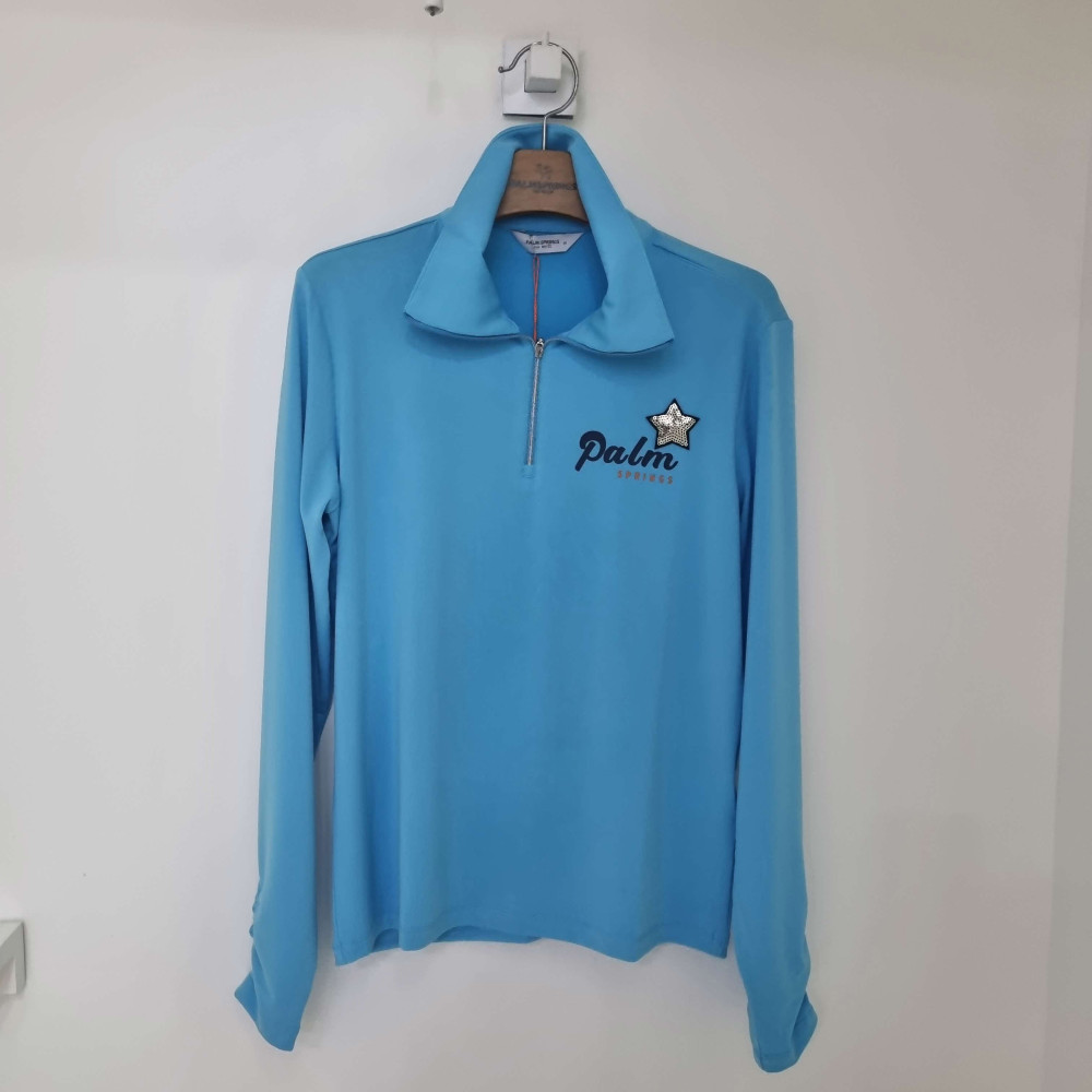 [행복한백화점][팜스프링스] 봄. 여성. 와이드 하이넥. 반짚업 티셔츠 STSL. 241201