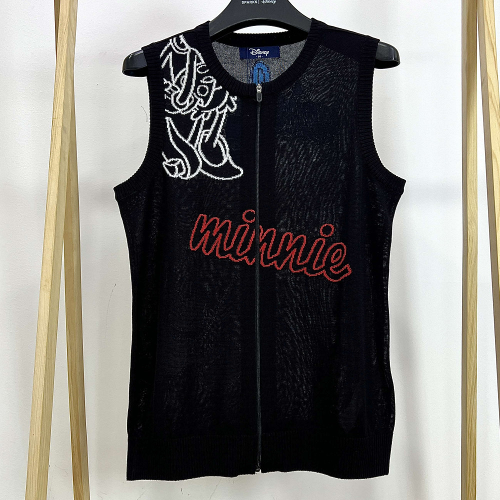 깔끔한 디자인의 여성 라운드넥 집업 니트 조끼입니다.