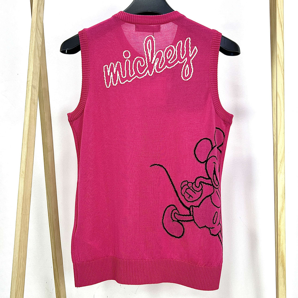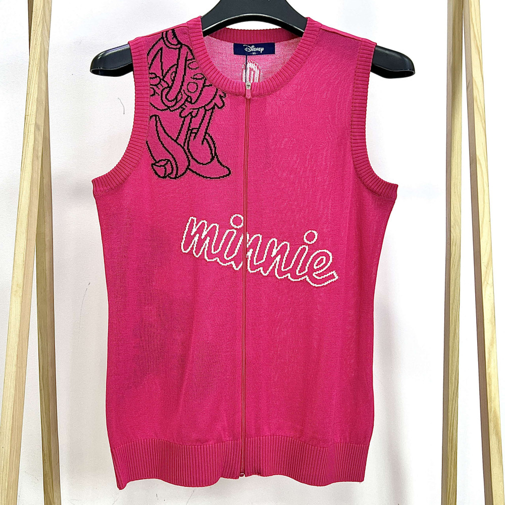 여성 라운드넥 집업 니트 조끼입니다.