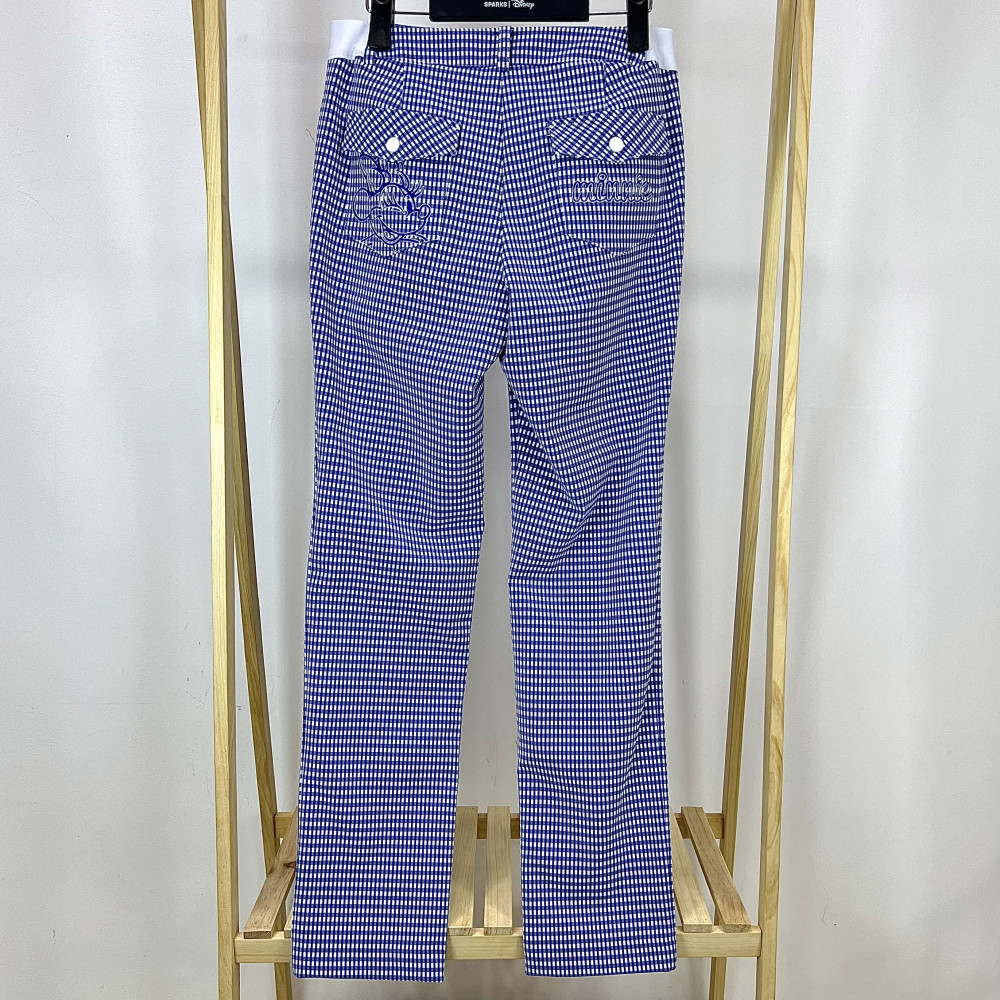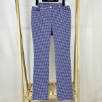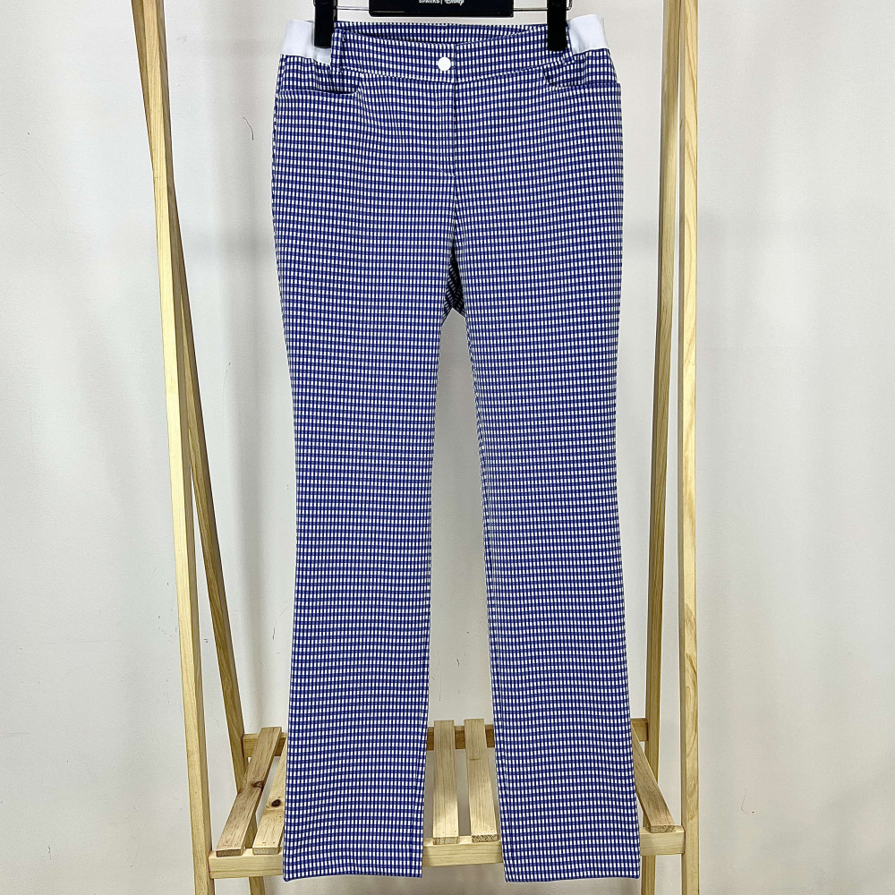 전체 체크 패턴의 여성 일자핏 팬츠입니다.