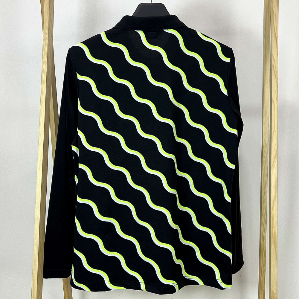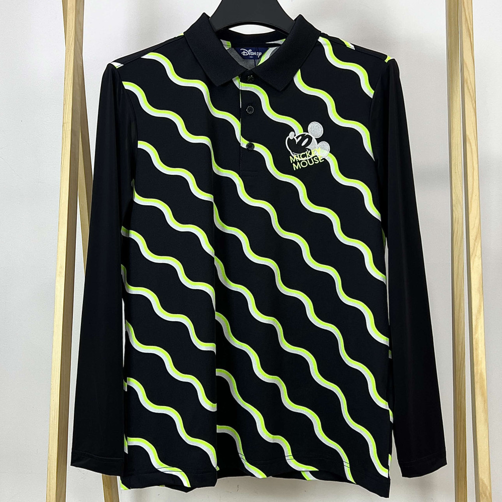 [행복한백화점][디즈니골프]물결 패턴 긴팔 카라 봄 티셔츠 블랙 남성 DO1MTS003