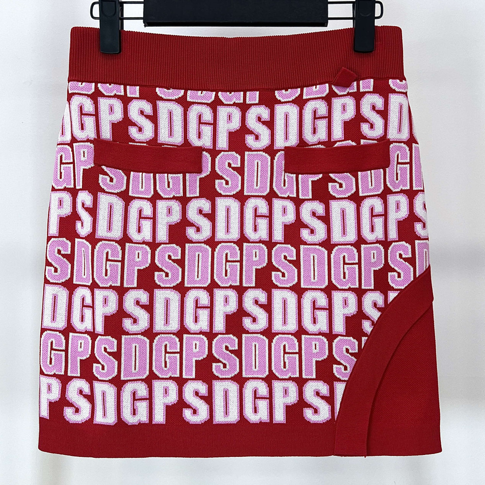 [행복한백화점][파사디]로고 자카드 니트 셋업 스커트 레드 여성 치마 P24SKK332S