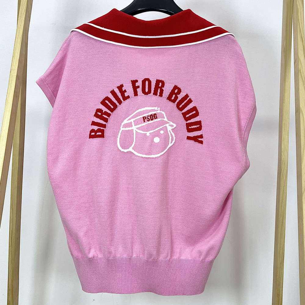 [행복한백화점][파사디]배색 와이드카라 로고 인타샤 니트 티셔츠 라이트핑크 여성 P24SKV342M