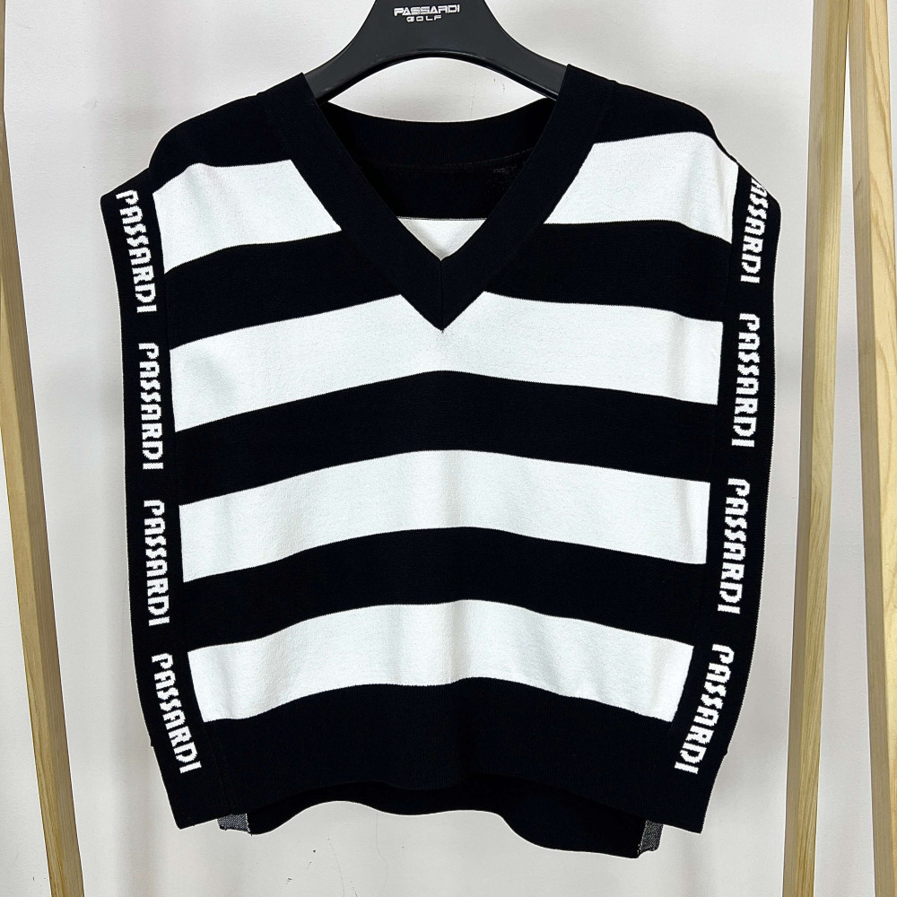 [행복한백화점][파사디]스트라이프 브이넥 니트 베스트 블랙 여성 조끼 P24SKV343M
