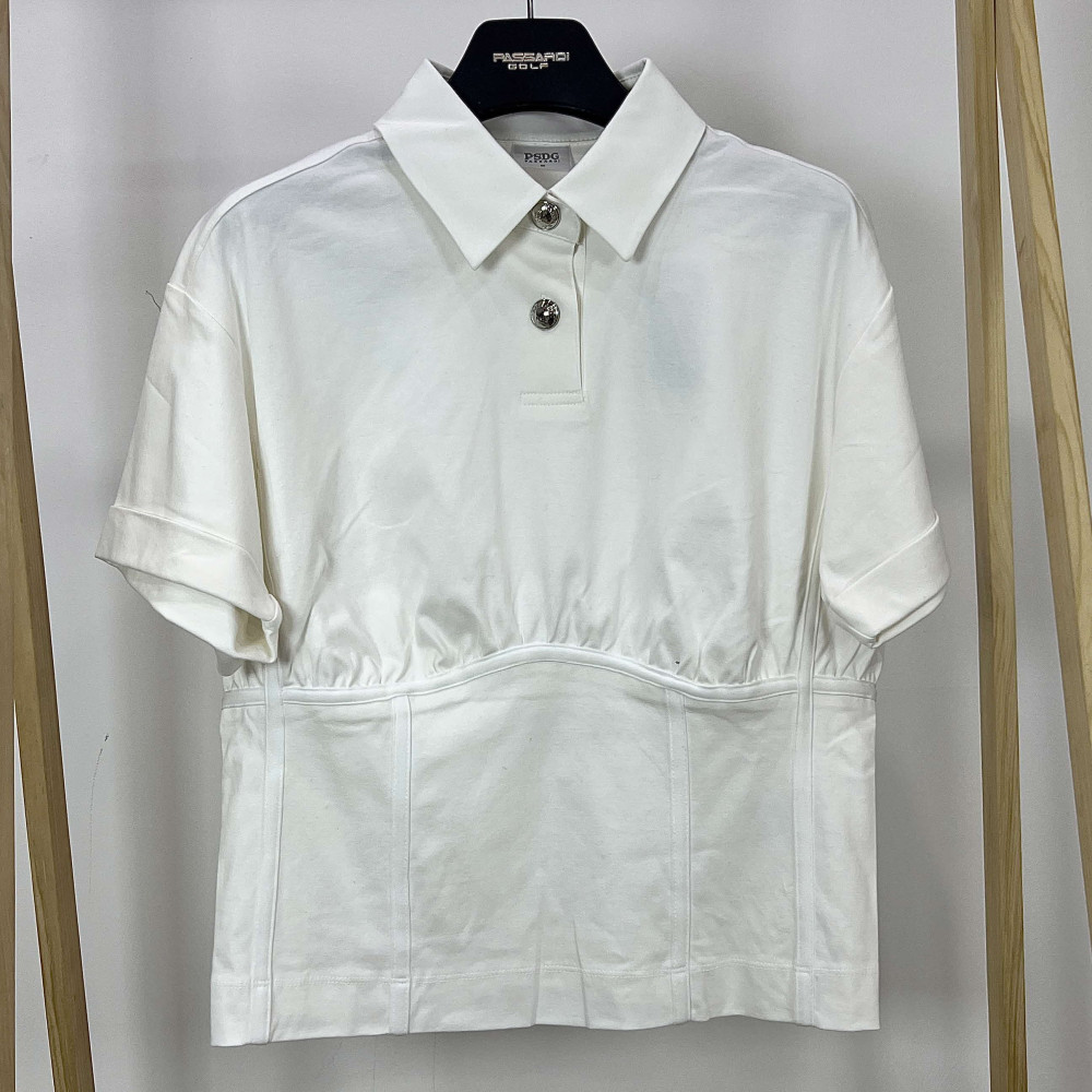 [행복한백화점][파사디]코르셋라인 반팔 카라 티셔츠 화이트 여성 P24MTY163M