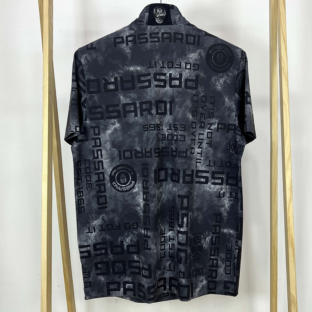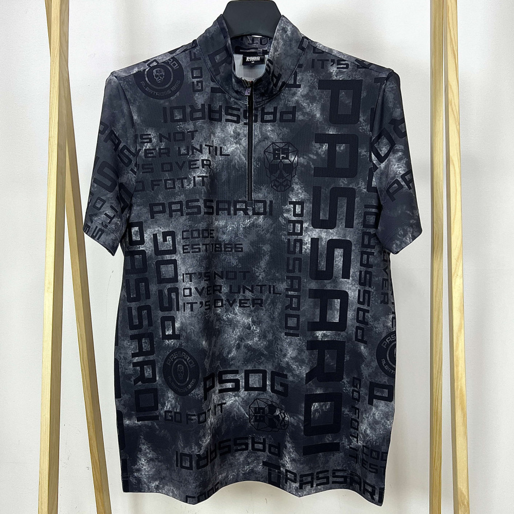 [행복한백화점][파사디]전체 패턴 반집업 반팔 티셔츠 블랙 남성 Q24MTP056X