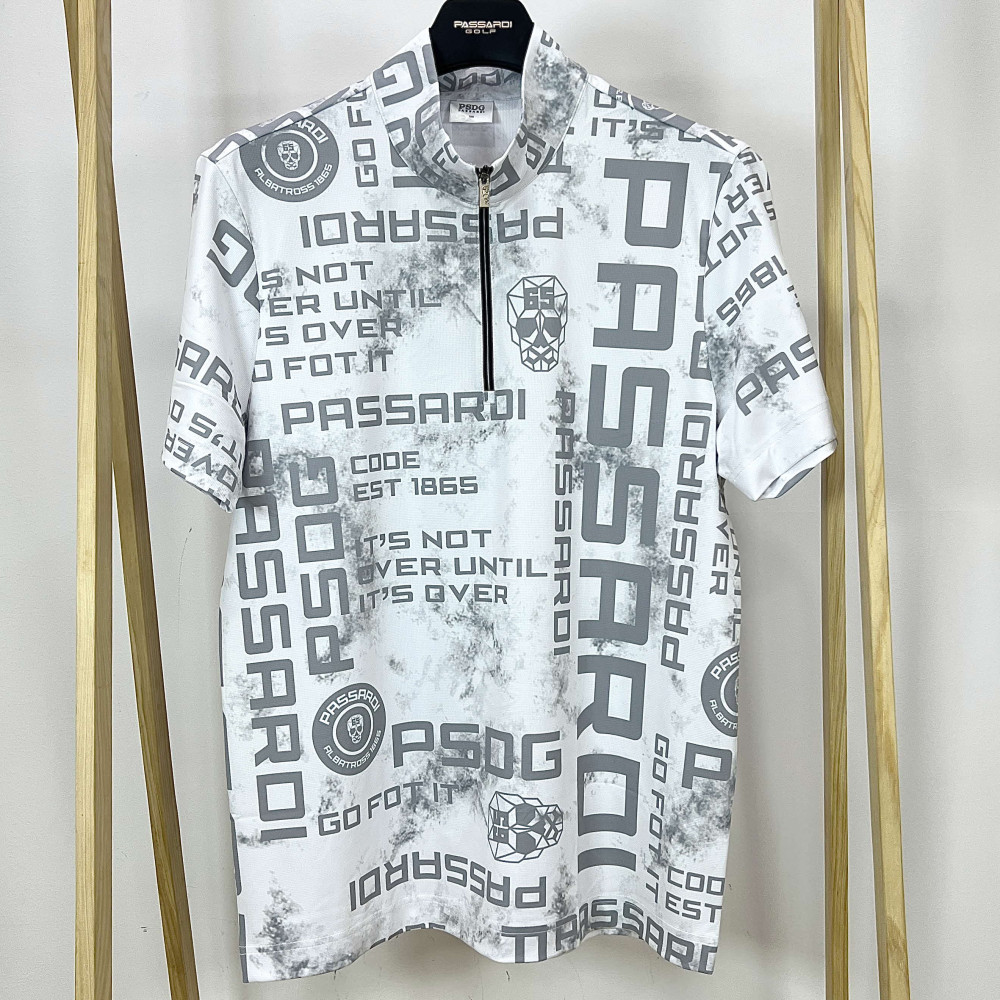 [행복한백화점][파사디]전체 패턴 반집업 반팔 티셔츠 화이트 남성 Q24MTP056X