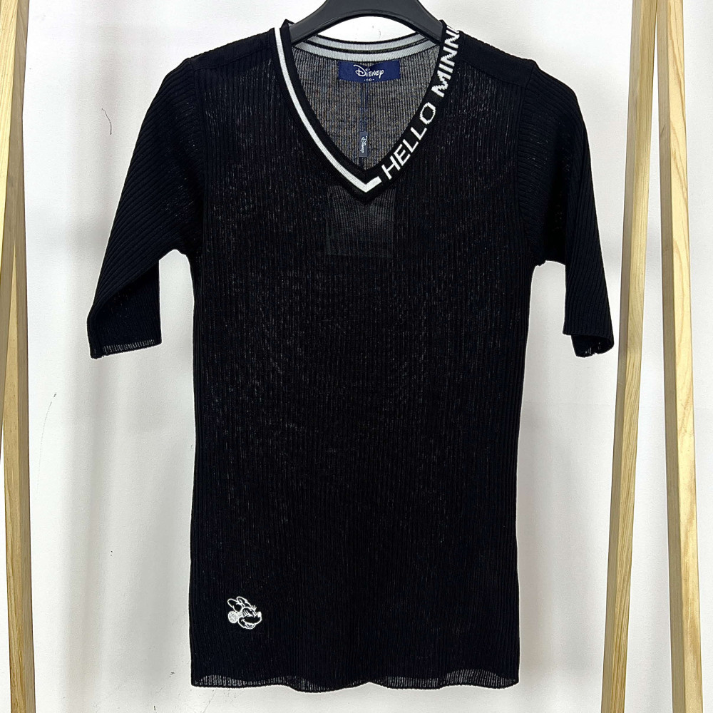 [행복한백화점][디즈니골프]브이넥 반팔 니트 티셔츠 블랙 여성 DO1LKT004 >