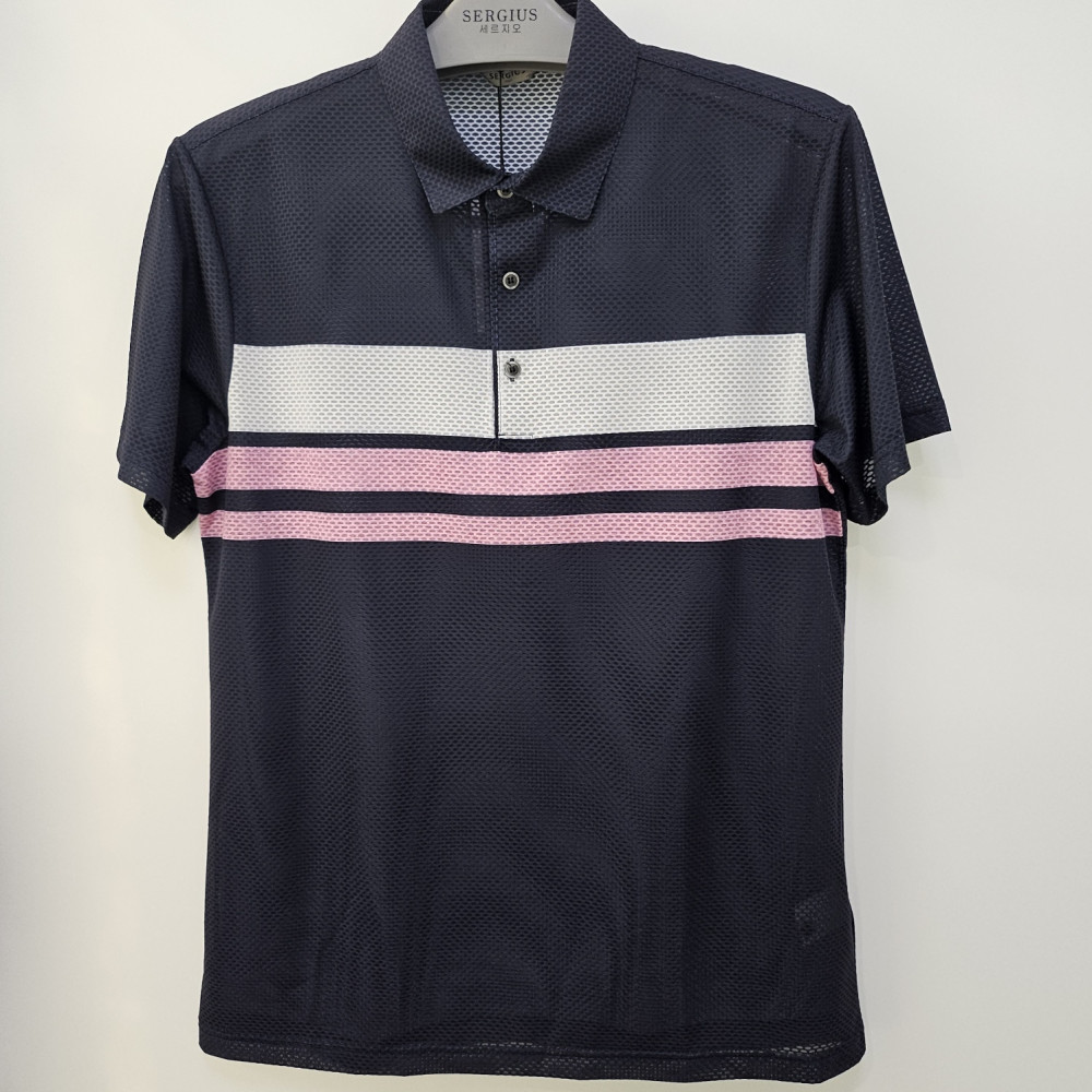 [행복한백화점][세르지오]앞, 흰색 다대 포인트 네이비 반팔 티셔츠 stsvbmh2606