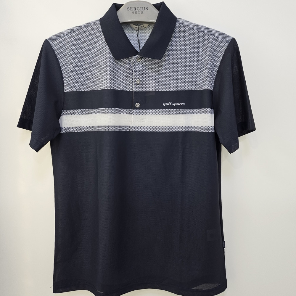 [행복한백화점][세르지오]가슴 단가라 네이비 반팔 티셔츠stsvbmh2628 >