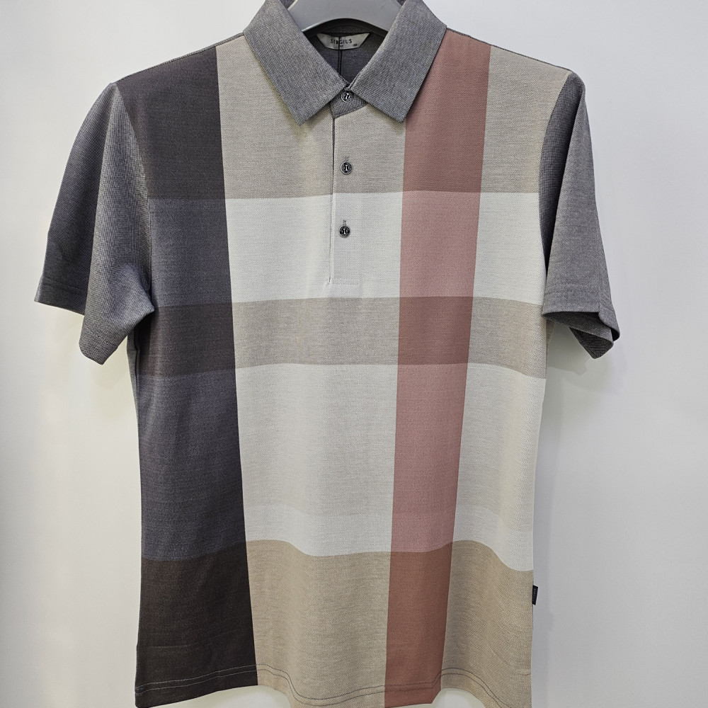 [행복한백화점][세르지오] 베이지 체크패턴 반팔 티셔츠 stsvbmf2602