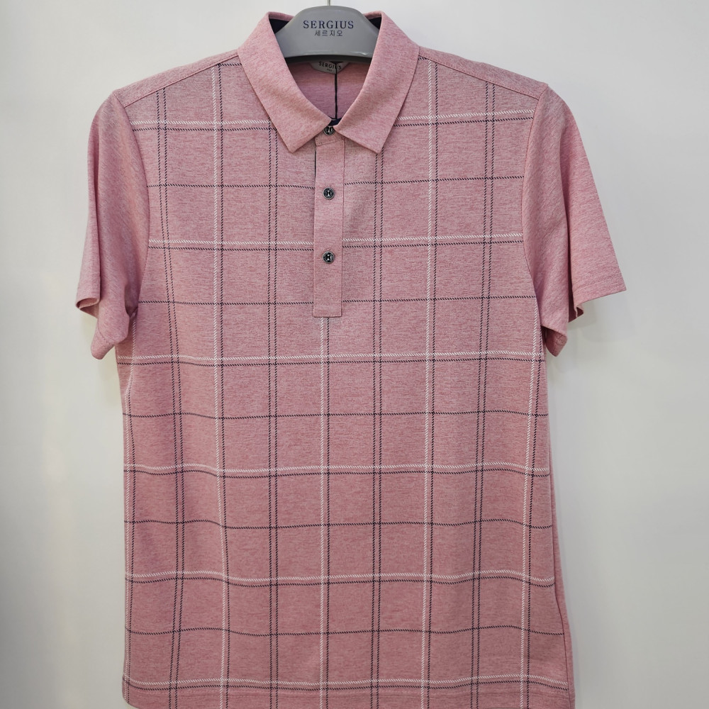 [행복한백화점][세르지오]사각 체크 선염 핑크 반팔 티셔츠 stsvbmg2788