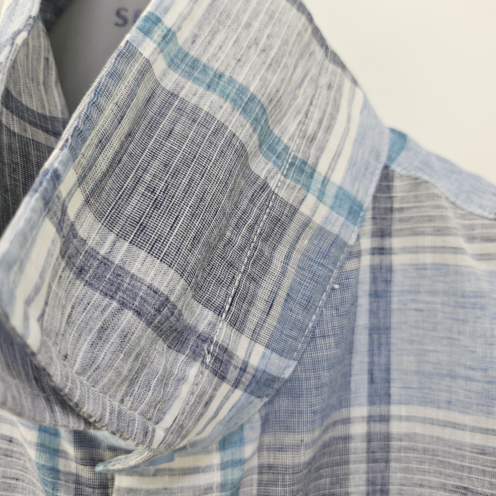[행복한백화점][세르지오]선염 체크 블루 남방 sytncme2427