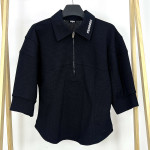 여성 반팔 카라 반집업 티셔츠입니다.