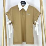 [행복한백화점][파사디]소매리본장식 반팔 카라 배색 티셔츠 베이지 여성 P24MTY165M